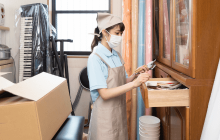 故人が残された品物を、一点一点間違いのないよう丁寧に仕分けいたします。また、ご依頼主様が探したいと希望される品物についても、探索を行います。故人への供養として、心を込めて行わせていただきます。また床や壁を養生することで建物を傷つけないよう保護します。