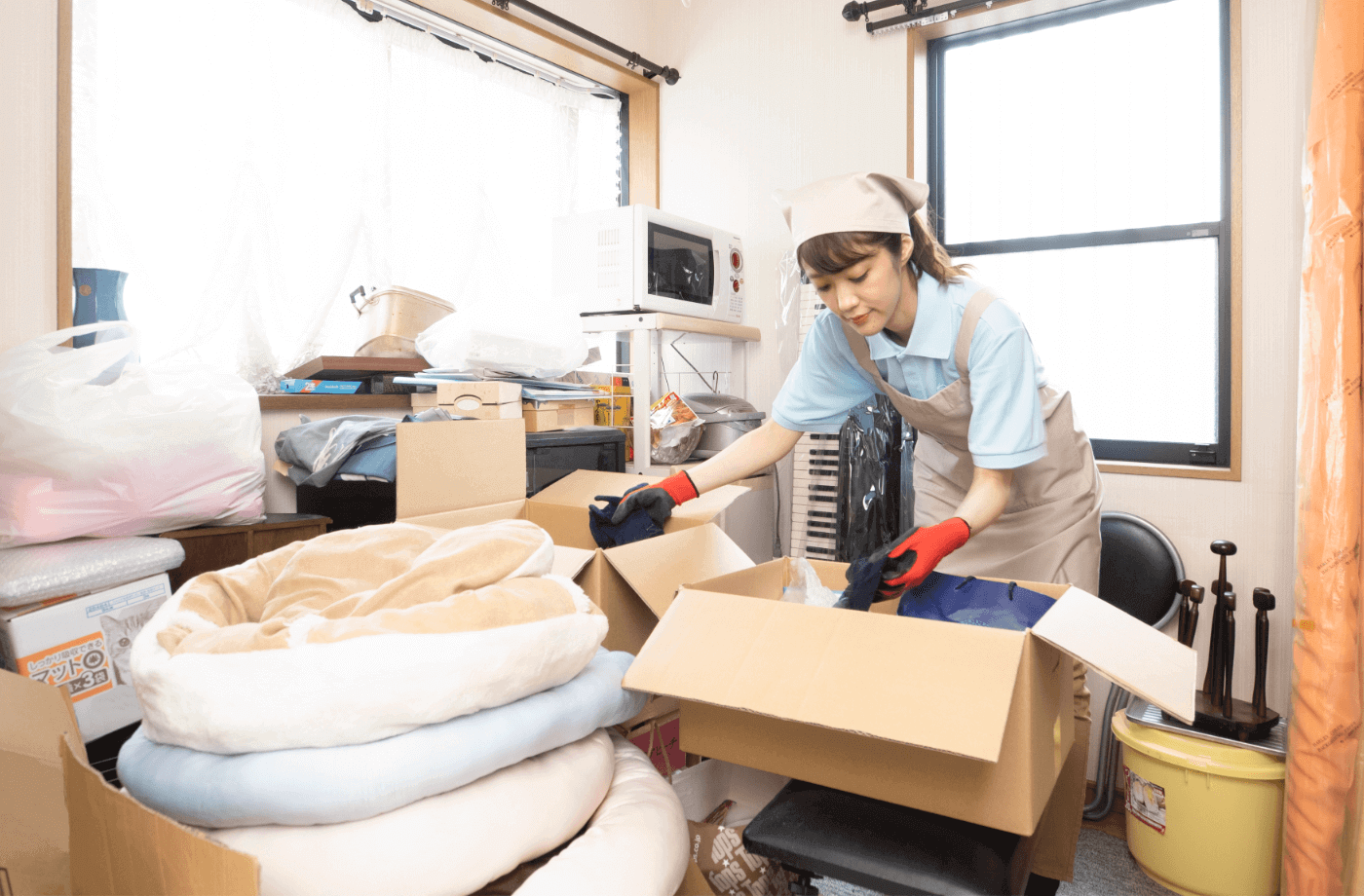 仕分けをした遺品は、それぞれの状態や内容に合わせて梱包いたします。不用品については自治体のルールに合わせて的確に分別し、スピーディーに搬出していきます。